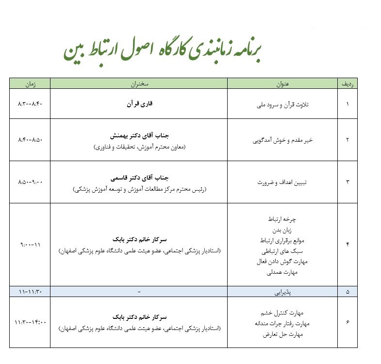 برگزاری کارگاه آموزشی یکروزه اصول ارتباط بین فردی موثر
