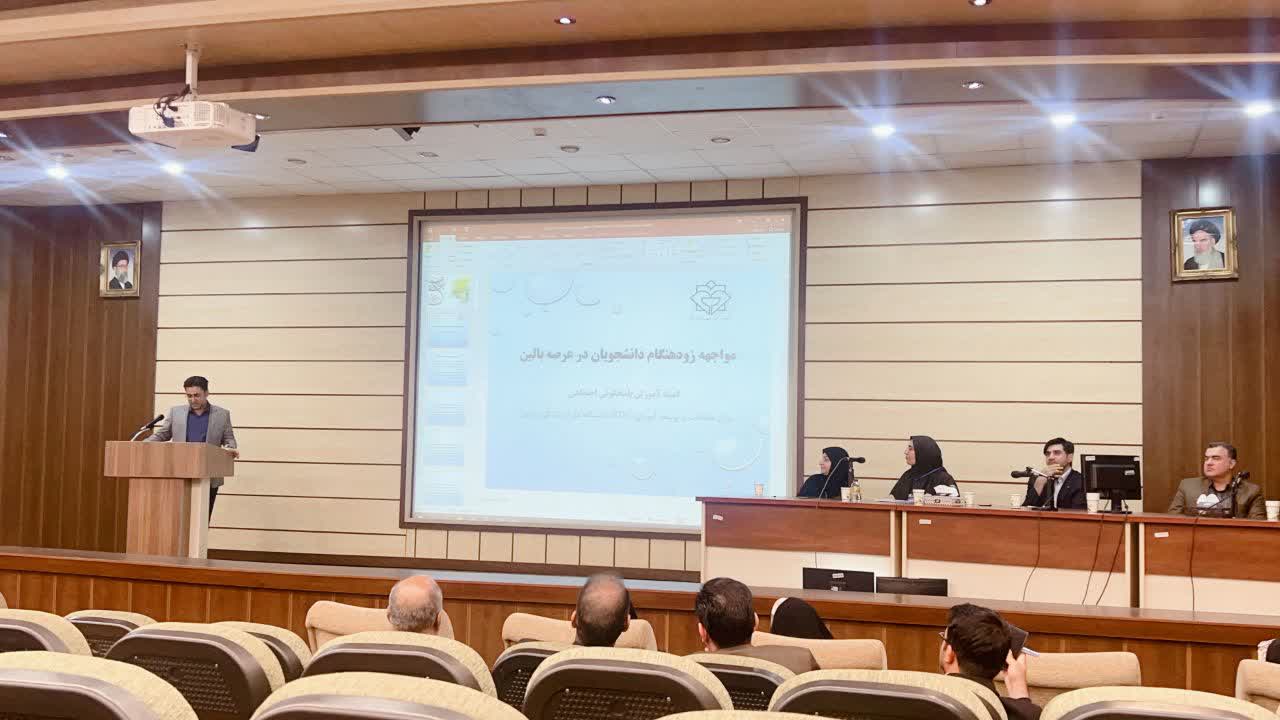 حضور معاون محترم آموزش، تحقیقات و فناوری دانشگاه جناب آقای دکتر بهمنش بعنوان ارایه کننده تجربه موفق دانشگاه علوم پزشکی دزفول در سطح کلان منطقه در محل ارایه ی تجربیات موفق دانشگاهها در بیست و چهارمین همایش کشوری آموزش پزشکی
